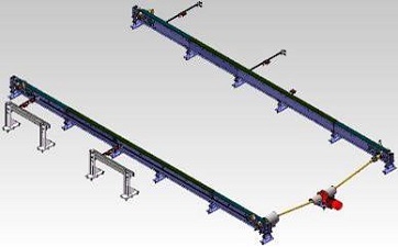滑橇輸送系統(tǒng)包含種類繁多的輸送機(jī)形式,如:滾床、轉(zhuǎn)臺(tái)、橫移機(jī)、偏心升降臺(tái)、橫移鏈、升降機(jī)、移載站、地面摩擦輸送機(jī)等等。