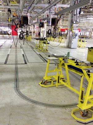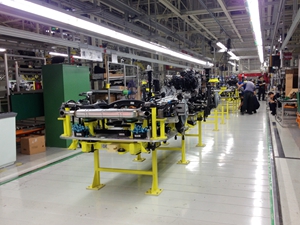 該工廠的生產(chǎn)節(jié)拍為35JPH,是北京奔馳汽車用以生產(chǎn)GLA車型的工廠。合裝線的合裝和擰緊采用半自動(dòng)的設(shè)備,工藝裝配要求和安全級別較高。該工廠合裝線高度還原了奔馳在匈牙利工廠的設(shè)計(jì),同時(shí)保證了原有合裝裝配工藝,得到了客戶的肯定。