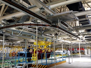 它是一種由驅(qū)動電機通過控制器以及滑觸線或者非接觸式供電技術(shù)獲取電力來驅(qū)動行走輪在空中鋁合金軌道上行進從而帶動小車行走的輸送系統(tǒng)。