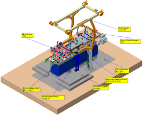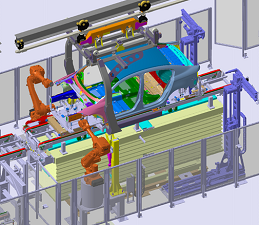 裝配完畢的底盤(pán)件由合裝托盤(pán)通過(guò)輸送系統(tǒng)輸送至合裝站,然后在此處完成與車(chē)身合裝。