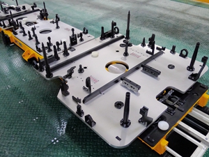 該工廠是神龍汽車(chē)的一個(gè)標(biāo)桿工廠,合裝線的自動(dòng)化程度較高,生產(chǎn)節(jié)拍達(dá)到了64JPH。其中合裝工位、分離工位、前后橋擰緊工位、搖籃擰緊工位均為全自動(dòng)工位。合裝托盤(pán)采用全新的輕量化設(shè)計(jì),得到了客戶(hù)的高度認(rèn)可。