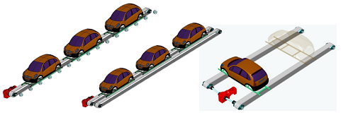 MCC conveyor has adopted the same concept of slat conveyor technology. However, it’s installed in a much shallow pit due to the different construction of drive station and tension station. Instead of steel chain with slat plates, the plastic modular chains serve as the moving surface to transport the vehicles. According to different process requirements, the MCC conveyor can be constructed in single wide MCC or double lane MCC. Smooth running, clean, low noise, easy maintenance and nice looking are some important features of MCC conveyor.
