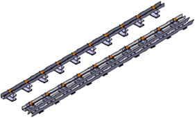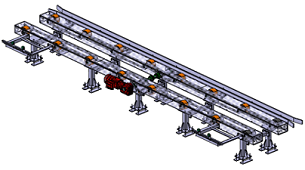 Skillet conveyor is the working platforms pushed forward inside the pit. The workers carry their assembly jobs onto the body while they’re standing on the platforms and moving along with the platforms. The spacious space around the body, free access to the assembly parts, slow running speed with very low noise, and wooden plate coverings all make the skillet conveyor a perfect ergonomics environment to the workers. Besides, it’s possible to install the lifting tables with the movement by either mechanical motion links or electrical motor driven, thus the process height of each working station can be optimum and ergonomics.