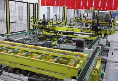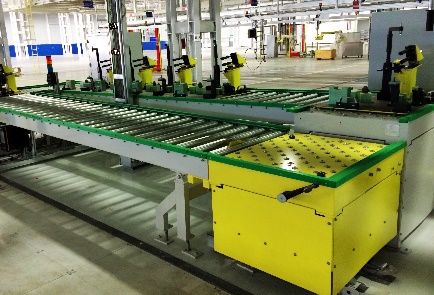 l Chassis pre-assembly line- slat conveyor, cross transfer